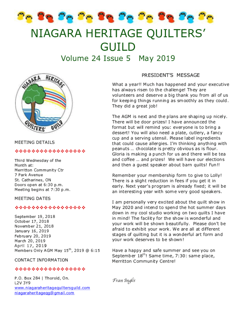 Get the free Niagara Heritage Quilters GuildPutting love into every ...