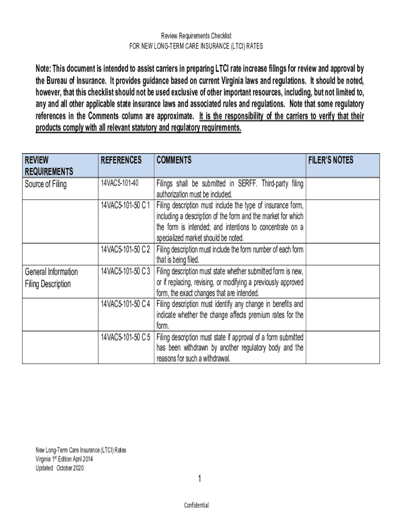 Get the free FOR REVISION TO LONG-TERM CARE INSURANCE (LTCI) RATES - scc virginia