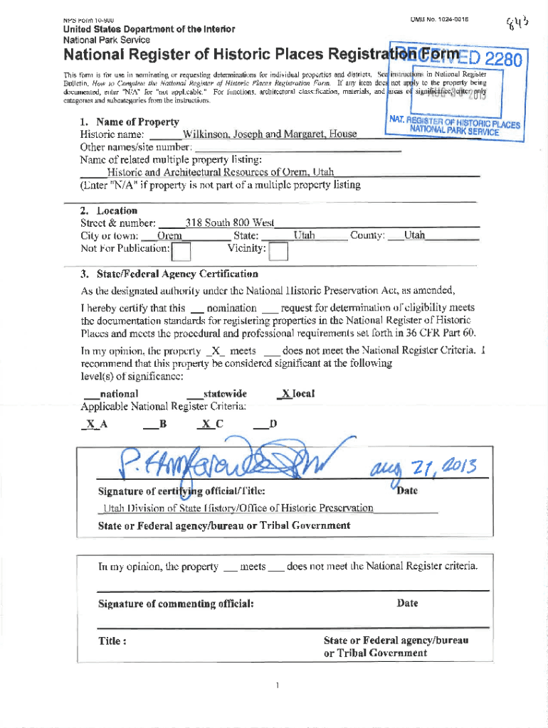 NL 'Storm 10900No. 10240016United States Department of the Interior National Park ServiceNational Register of Historic Places Register This form is for use in nominating or requesting determinations