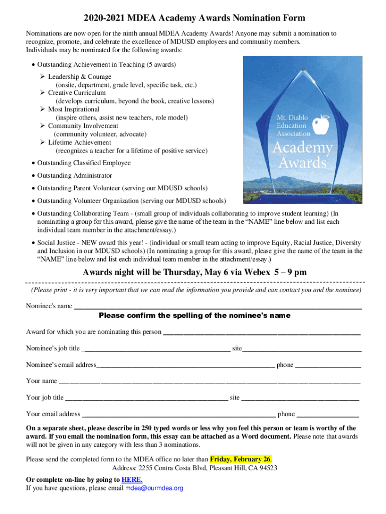 Nominations are now open for the ninth annual IDEA Academy Awards! Anyone may submit a nomination to