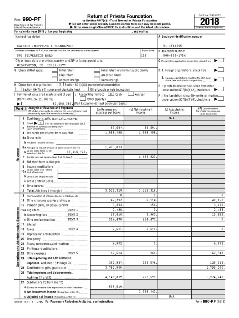 Internal Revenue ServiceReturn of Private Foundation OMB No. 15450052or Section 4947(a)(1) Trust Treated as Private Foundation
