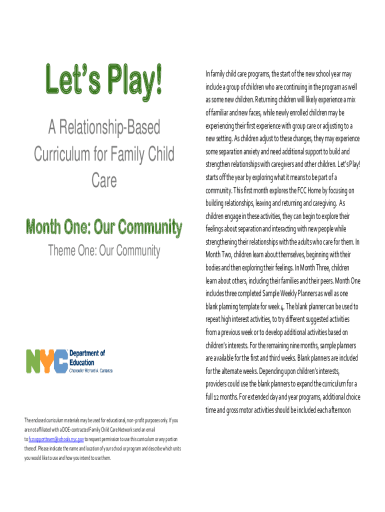 Theme One: Our Community enclosed curriculum materials may be used for educational, non-profit purposes only.