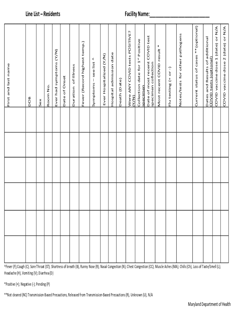 COVID-19 vaccine dose 2 (date) or N/COVID-19 vaccine dose 1 (date) or N/Dates and Results of additional COVID-19 tests (optional)Current status of cases **(optional)Notes/tests for other pathogens