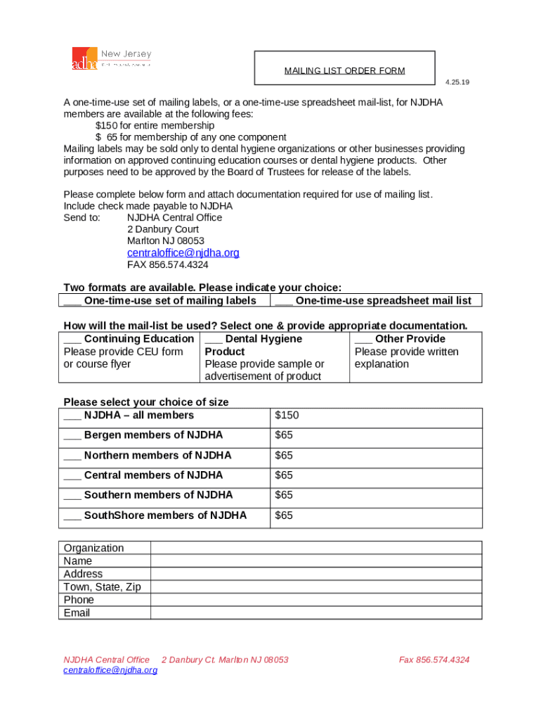How to fill NEW JERSEY DENTAL HYGIENISTS ASSOCIATION Email ... word template