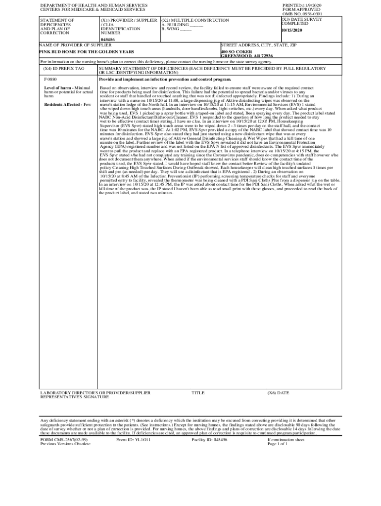 Get the free Nursing Home Survey Report Details for PINK BUD HOME FOR THE GOLDEN YEARS on 10/15/2...