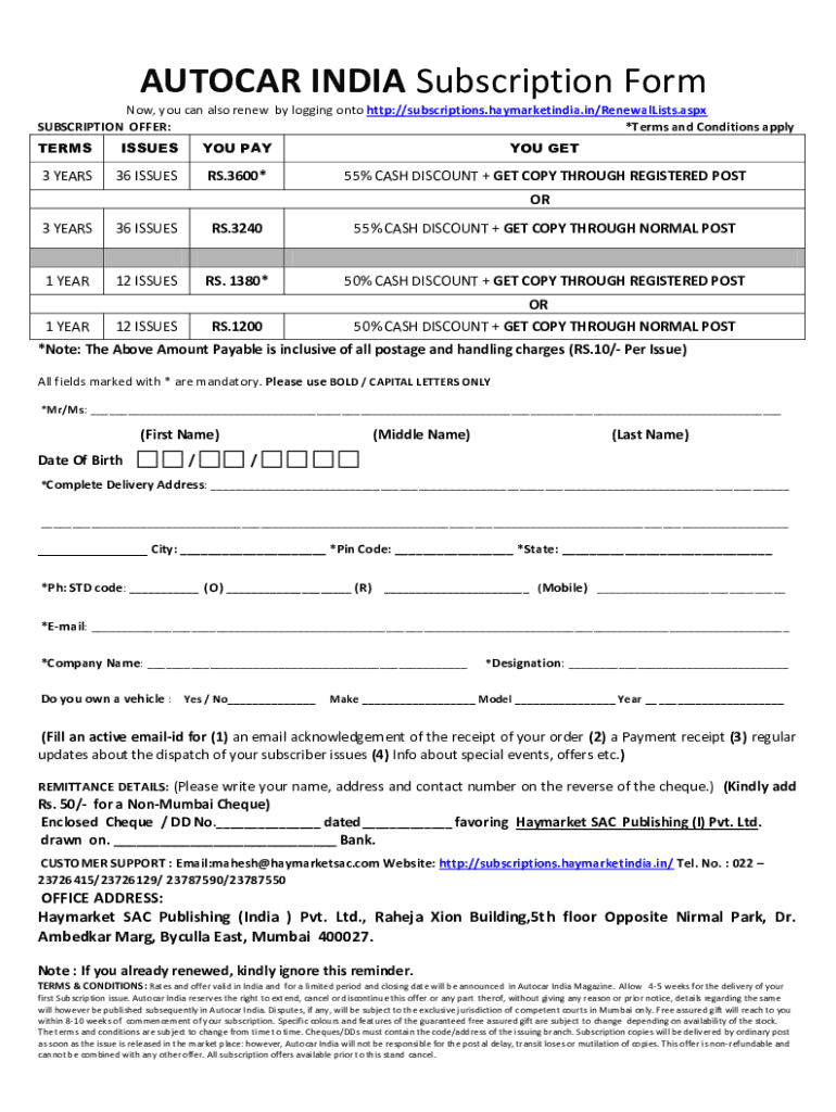 Now, you can also renew by logging onto http://subscriptions.haymarketindia.in/RenewalLists.aspx