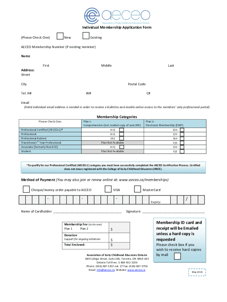 IndividualMembershipApplicationForm (PleaseCheckOne)Existing AECEOMembershipNumber(ifexistingmember) Name