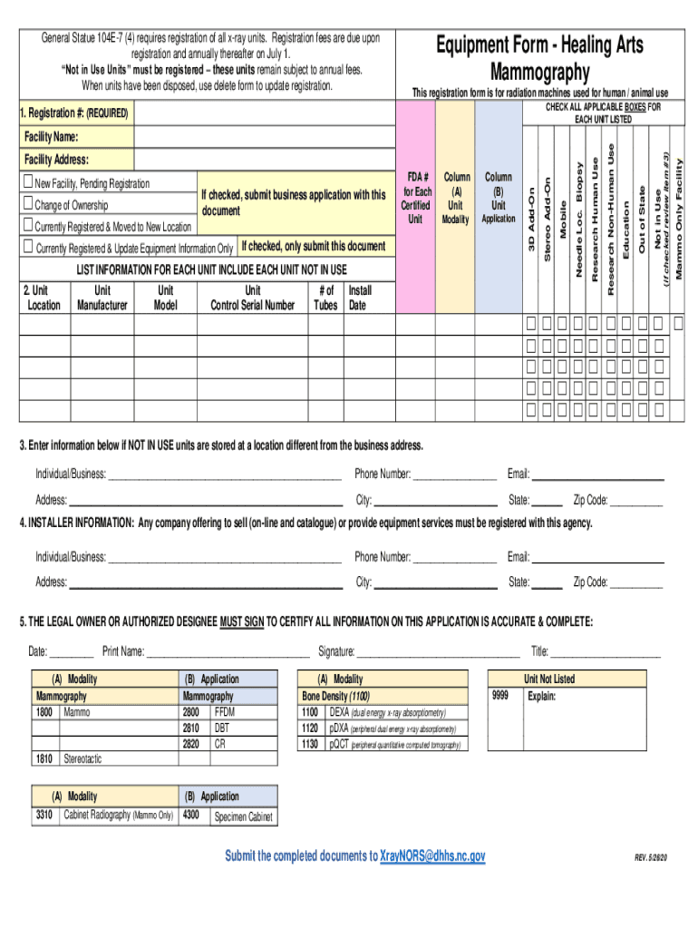 General Statue 104E7 (4) requires registration of all ray units. Registration fees are due upon registration and annually thereafter on July 1. Not in Use Units must be registered these units remain