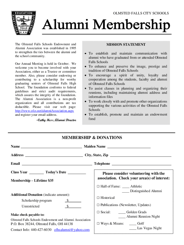 Get the free Olmsted Falls Schools Endowment and Alumni Association ...