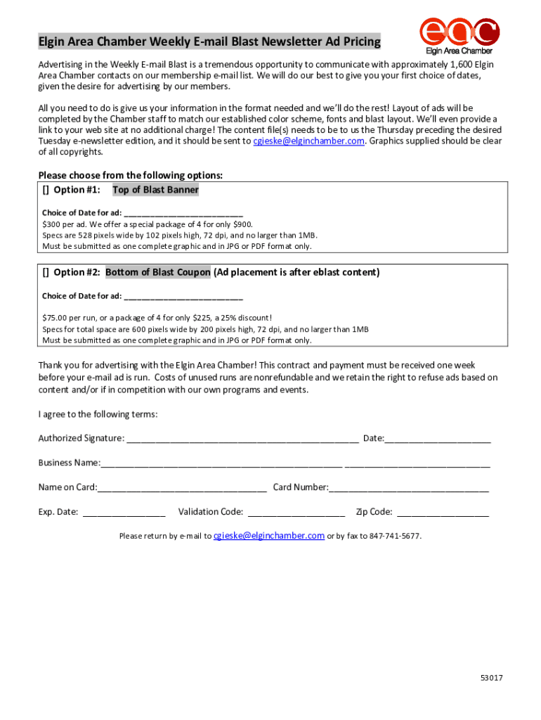 Elgin Area Chamber Weekly Email Blast Newsletter Ad Pricing