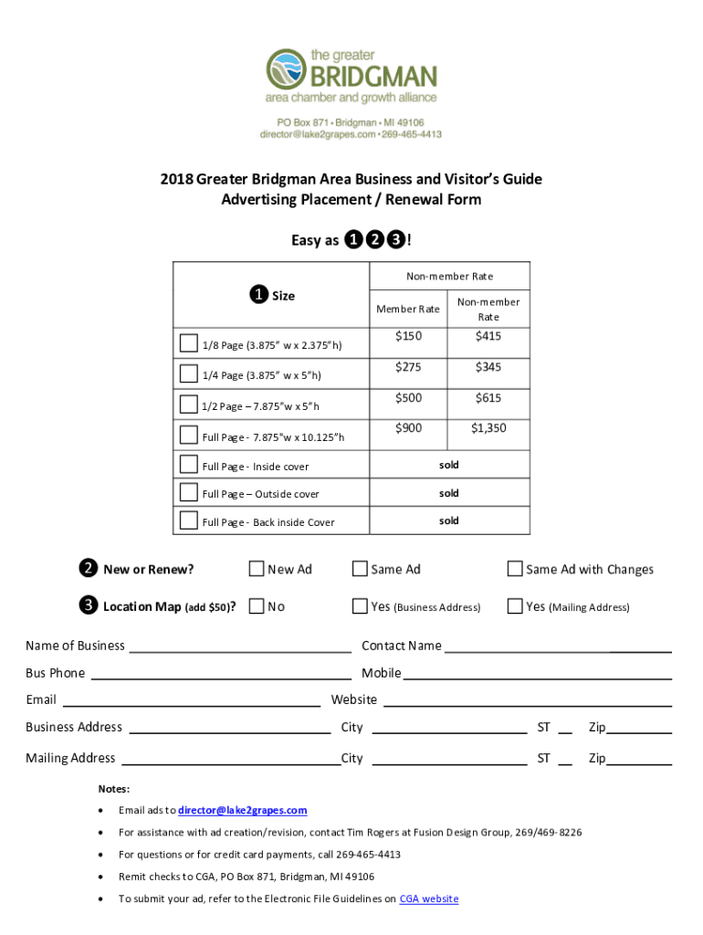 To fill out visitor guide advertising St. George, businesses should complete the designated application form, providing accurate details about their services, description, and contact information.