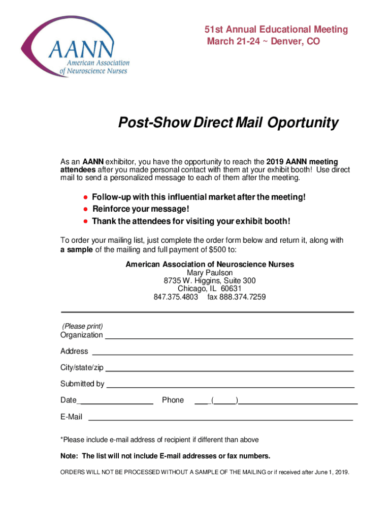 51st Annual Educational Meeting March 2124 Denver, COPostShow Direct Mail Opportunity As an MANN exhibitor, you have the opportunity to reach the 2019 MANN meeting attendees after you made personal