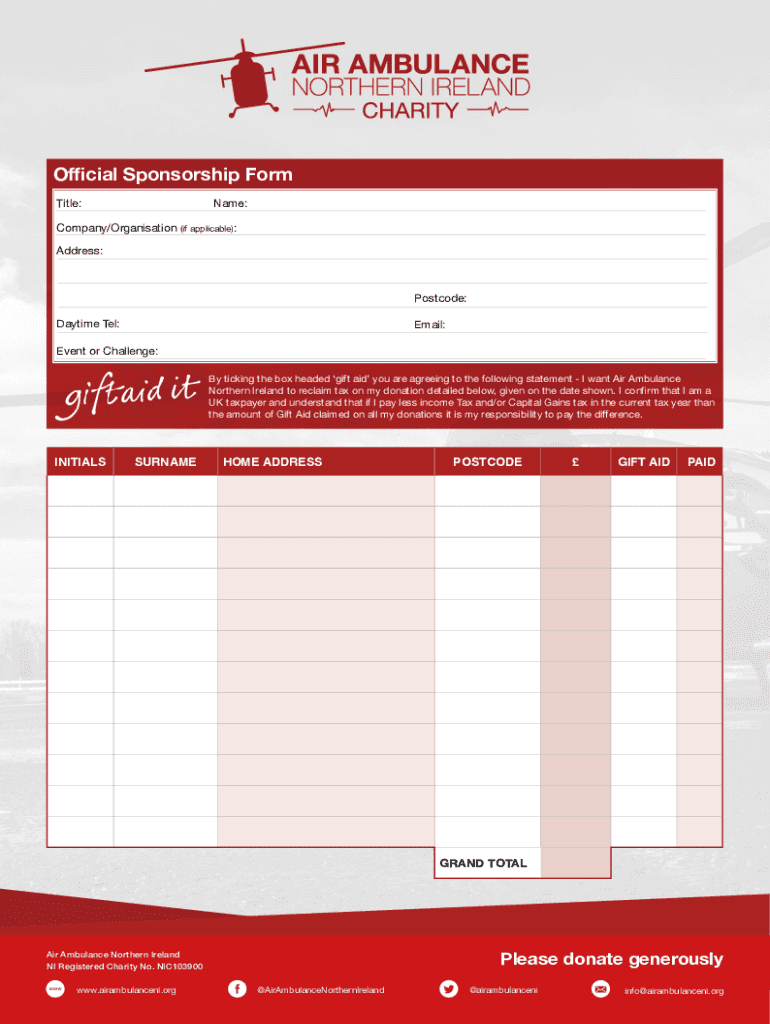 Get the free Official Sponsorship Form - Air Ambulance NI