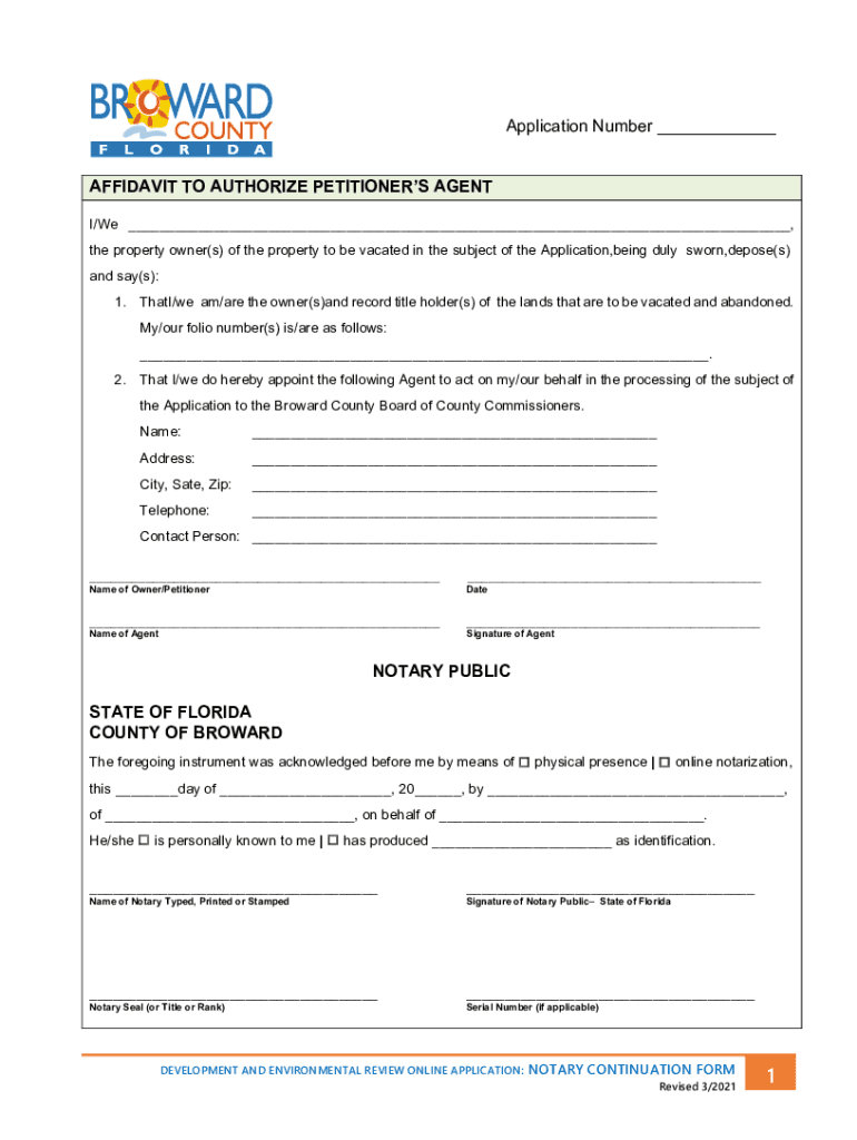 Application Number AFFIDAVIT TO AUTHORIZE PETITIONERS AGENT I/We, the property owner(s) of the property to be vacated in the subject of the Application, being duly sworn, depose(s) and say(s): 1.