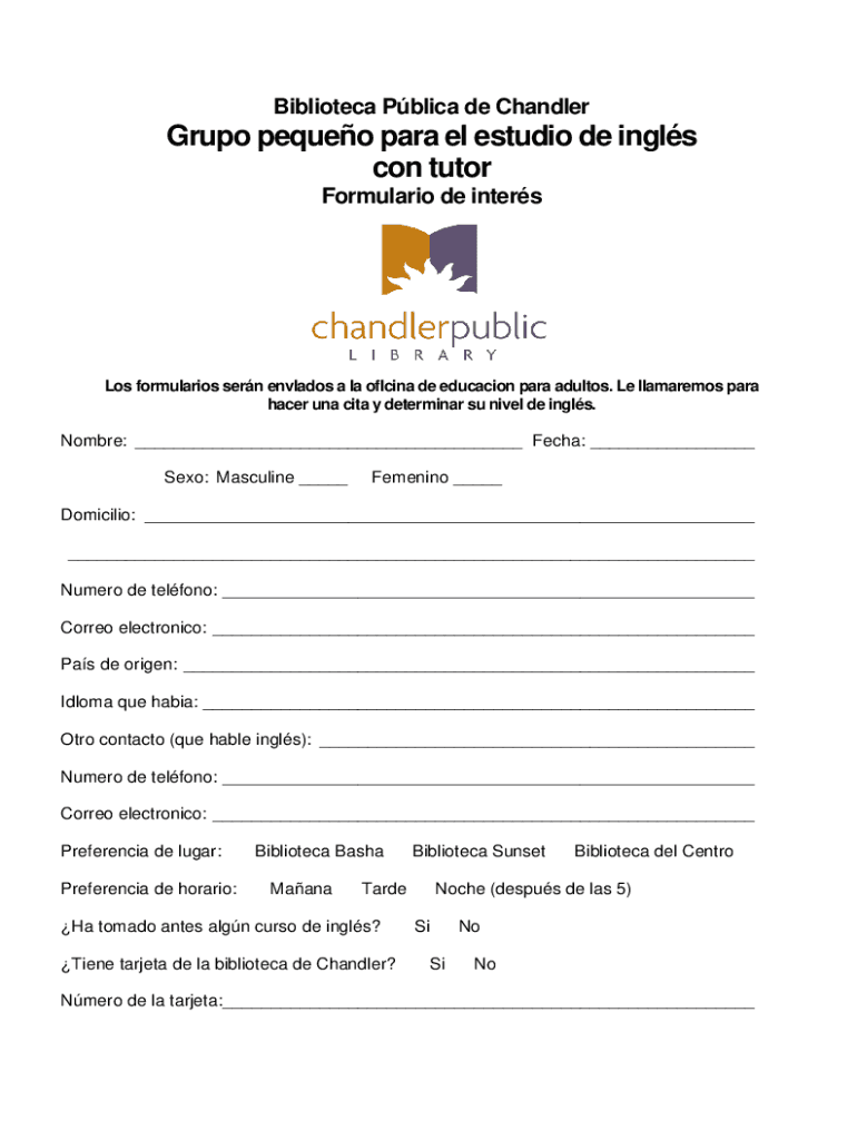 Biblioteca Public de ChandlerGrupo sequel para El studio DE single con tutor Formulation DE inters Los formularies seen enclaves à la flying DE education para adults. Le's llamas para racer RNA city