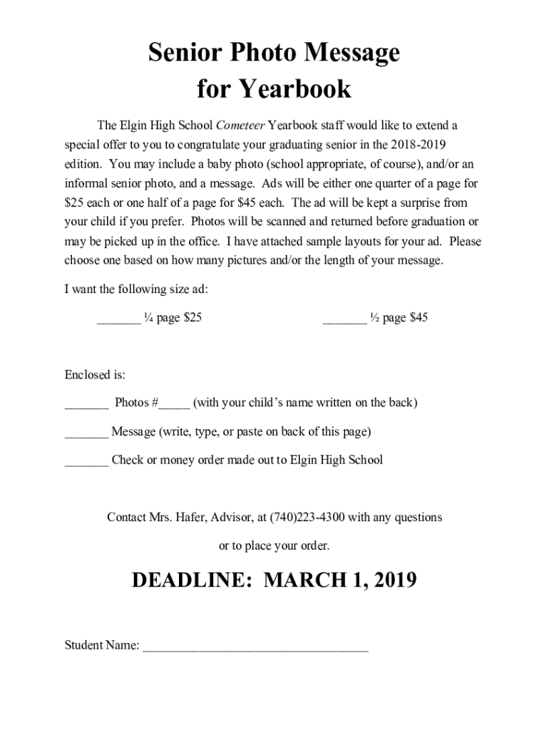 Students, teachers, and school faculty who wish to include personal notes or messages in the yearbook are required to file yearbook messages.