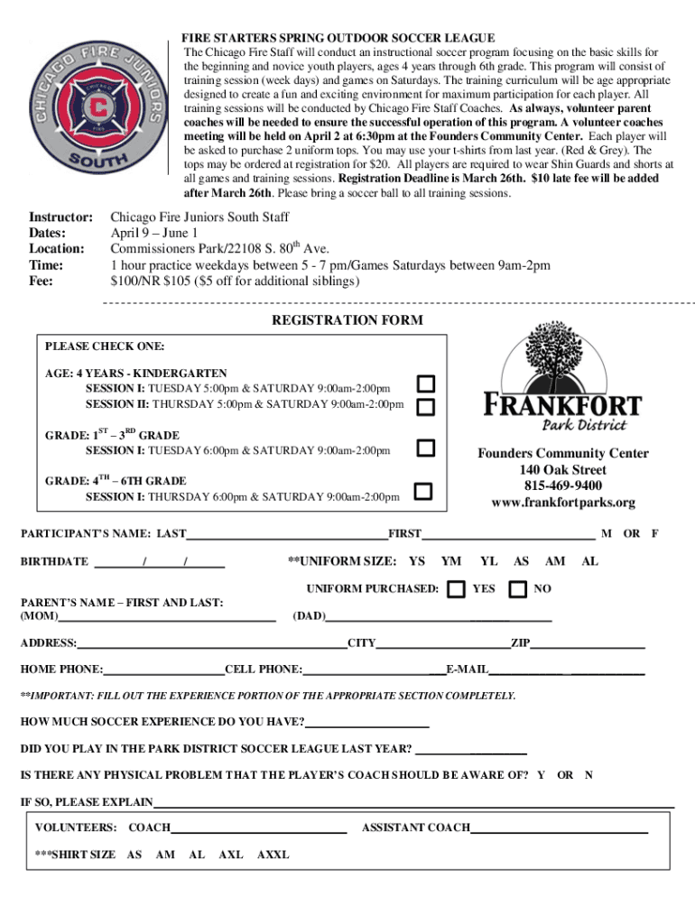 Get the free Spring Outdoor Soccer League - Frankfort Park District