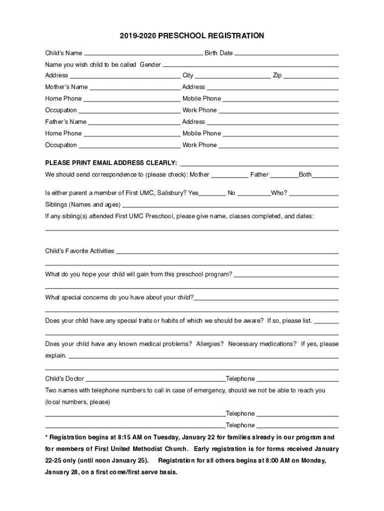 20192020 PRESCHOOL REGISTRATION