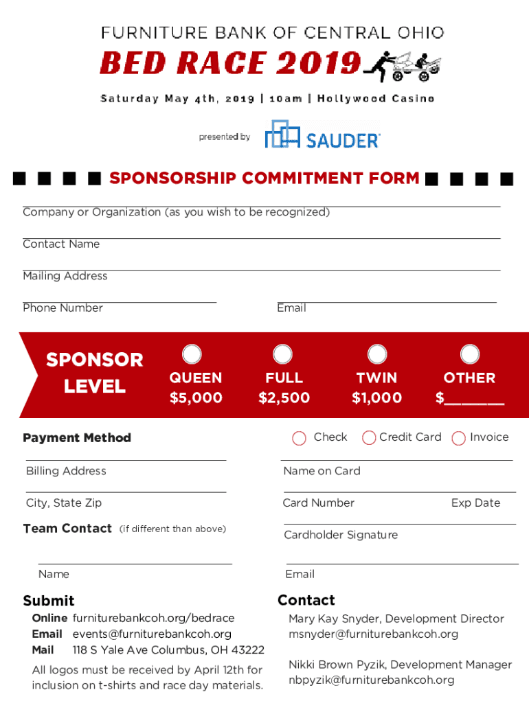 SPONSORSHIP COMMITMENT FORM Company or Organization (as you wish to be recognized) Contact Name Mailing Address Phone Number Email SPONSOR LEVESQUE $5,000FULL $2,500TWIN $1,000OTHER $