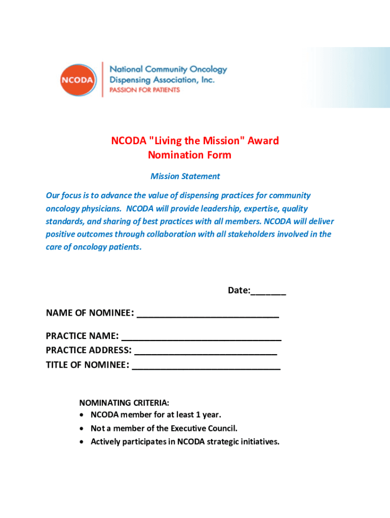 Get the free NCODA Living the Mission Award Nomination Form