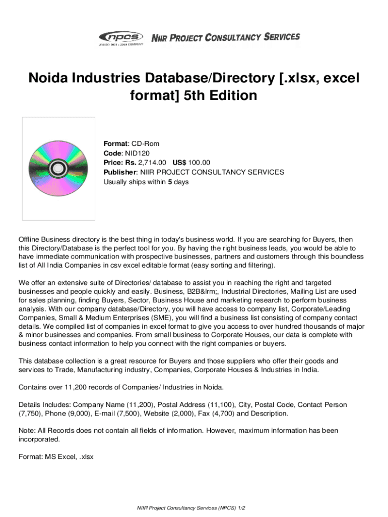 Get the free Noida Industries Database/Directory .xlsx, excel format 5th Edition