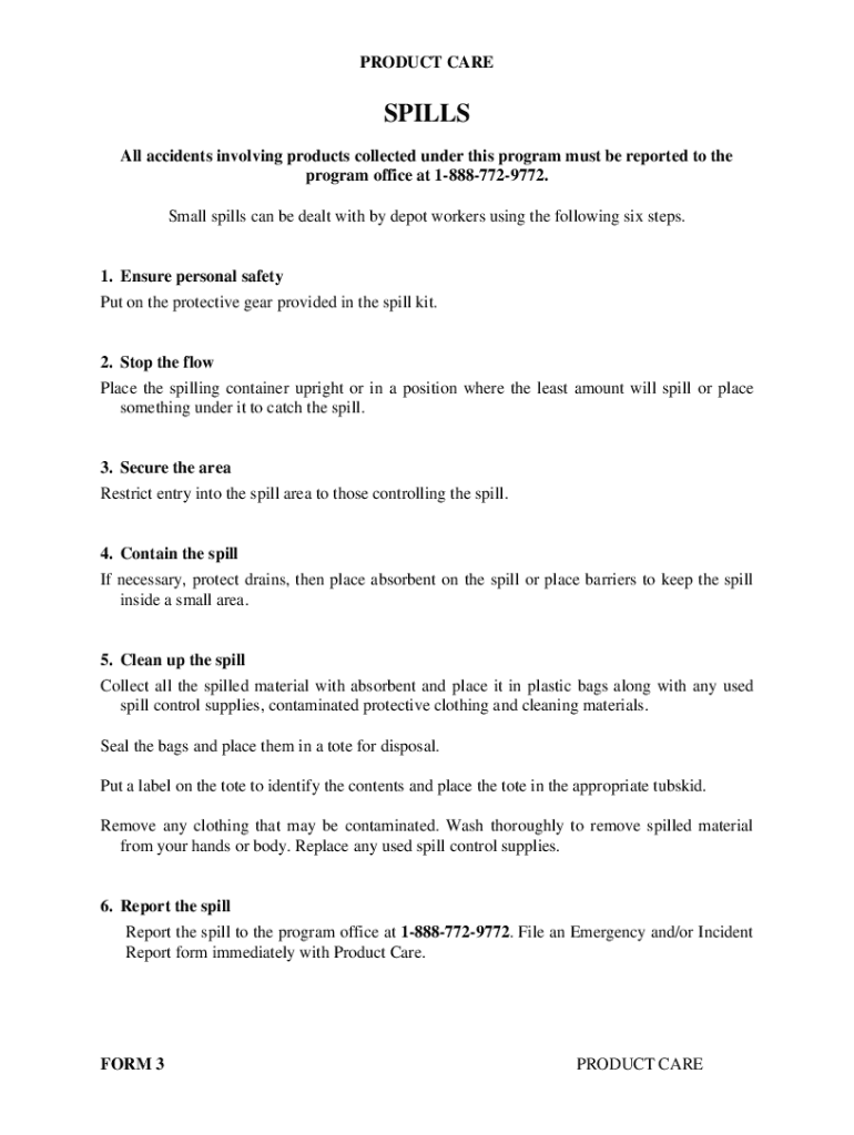 All accidents involving products collected under this program must be reported to the