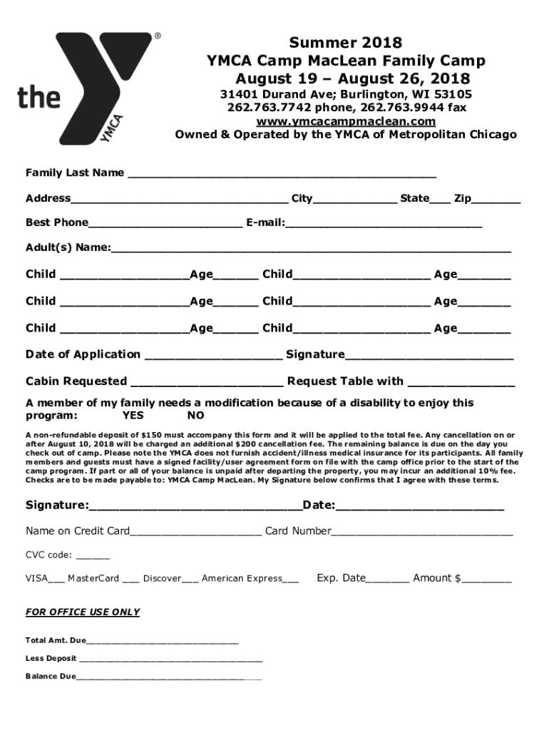 Fill out your ymca camp maclean online with pdfFiller!