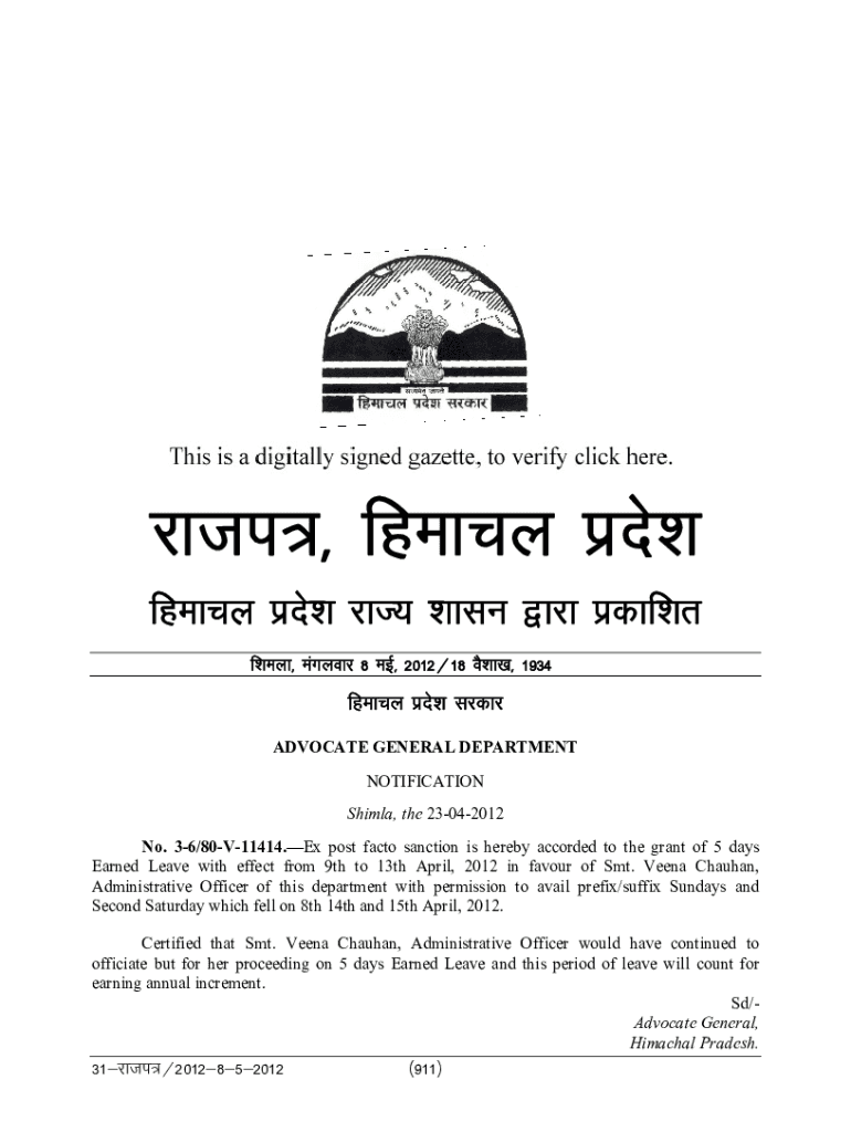 Get the free e Gazette of Himachal Pradesh. 31 e Gazette dt. 8-5-2012
