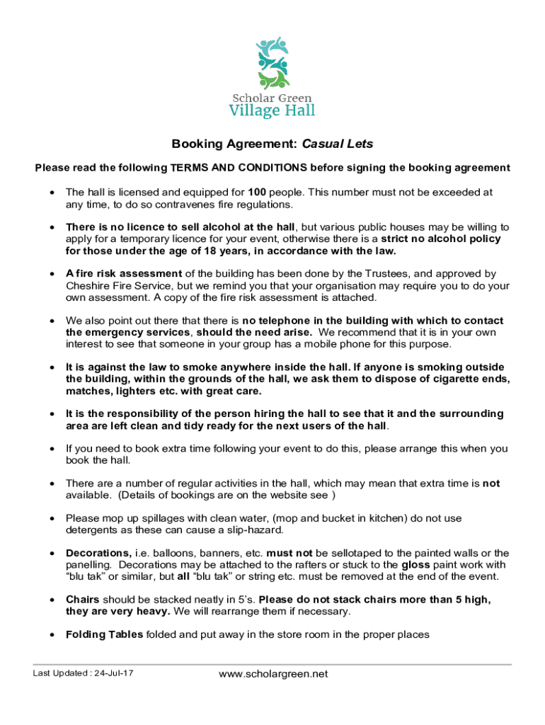 Get the free Scholar Green Village Hall BOOKING AGREEMENT. CASUAL LETS ...