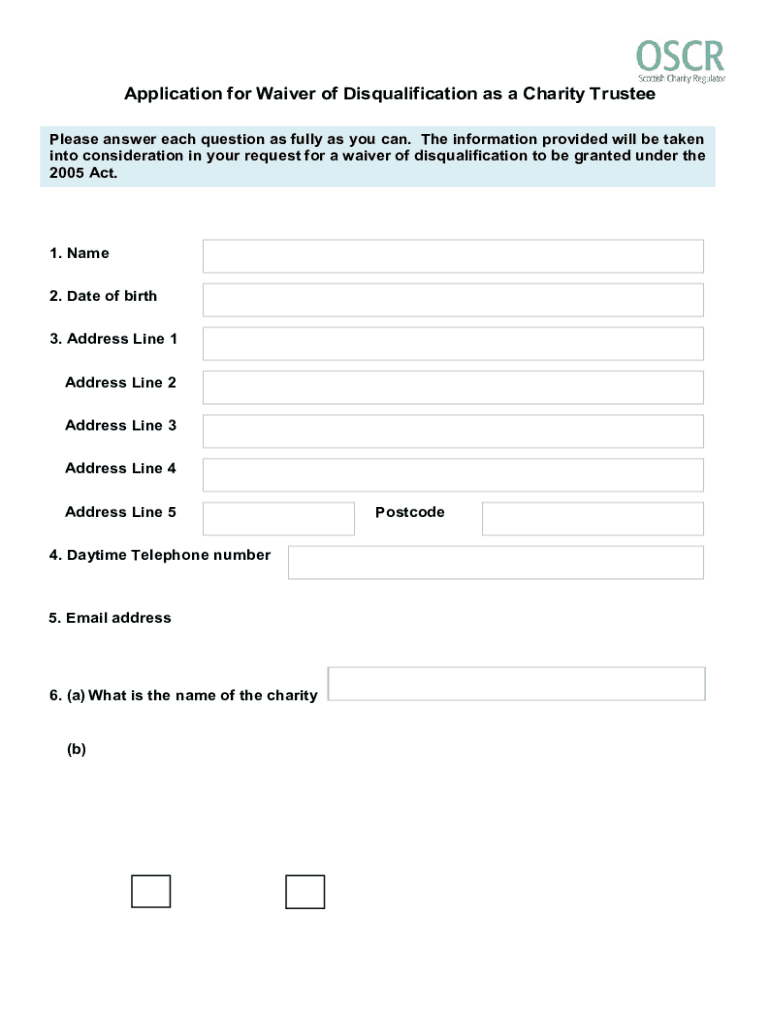 Get the free Application for waiver of disqualification as a charity trustee