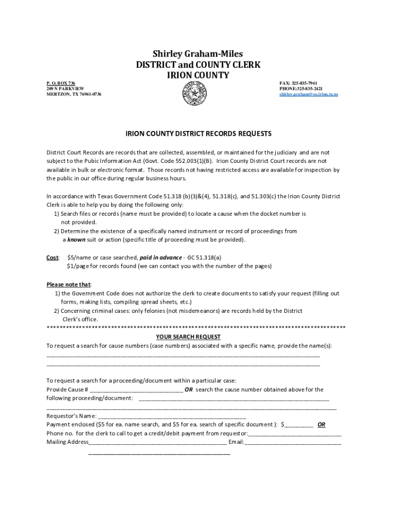 Get the free PDF Shirley Graham-Miles DISTRICT and COUNTY ... - Irion County, Texas
