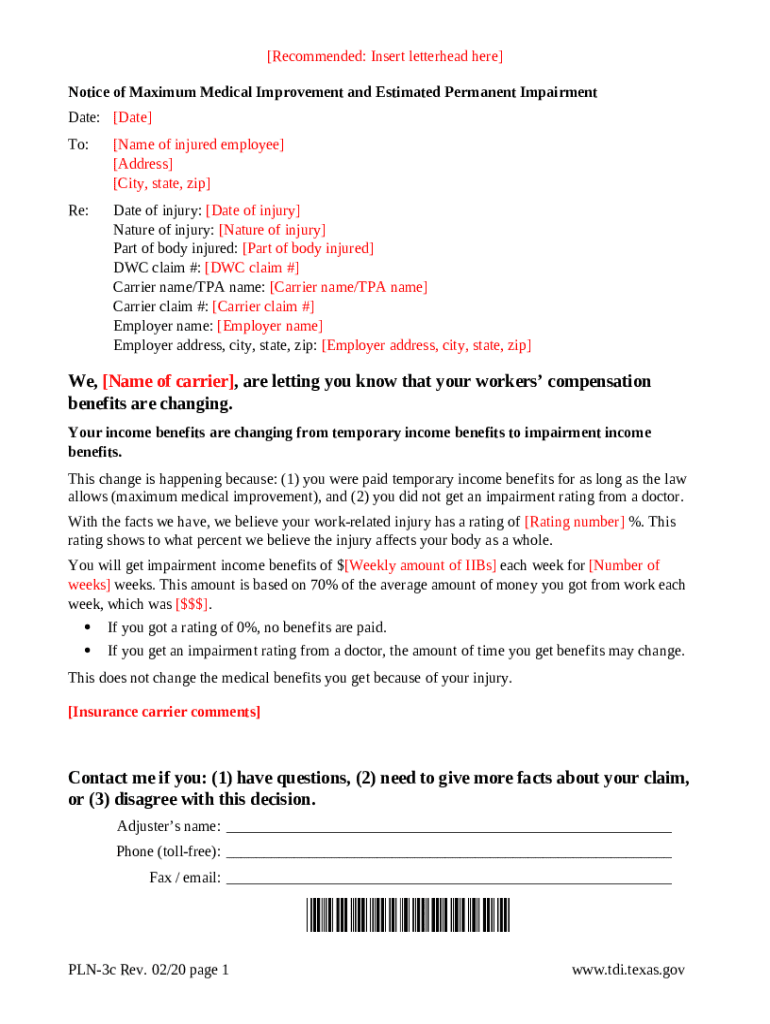 Template Notice of Maximum Medical Improvement and Estimated Permanent Impairment. Notice of Maximum Medical Improvement and Estimated Permanent Impairment instructions