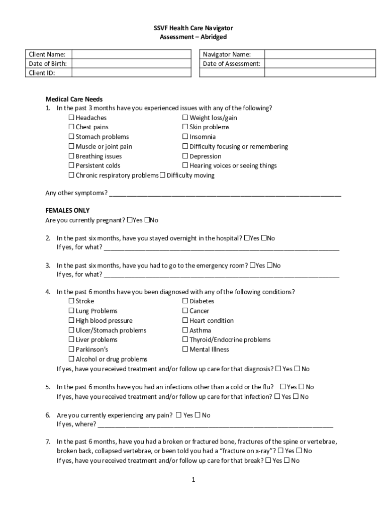 Get the free S S V F Health Care Navigator Assessment. Abridged.