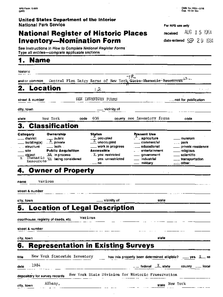 0 MB No. 10240018 Exp. 103184NPS Form 10900 (382)United States Department of the Interior National Park ServiceNow NPS use onlyNational Register of Historic Places Inventory Nomination Form received