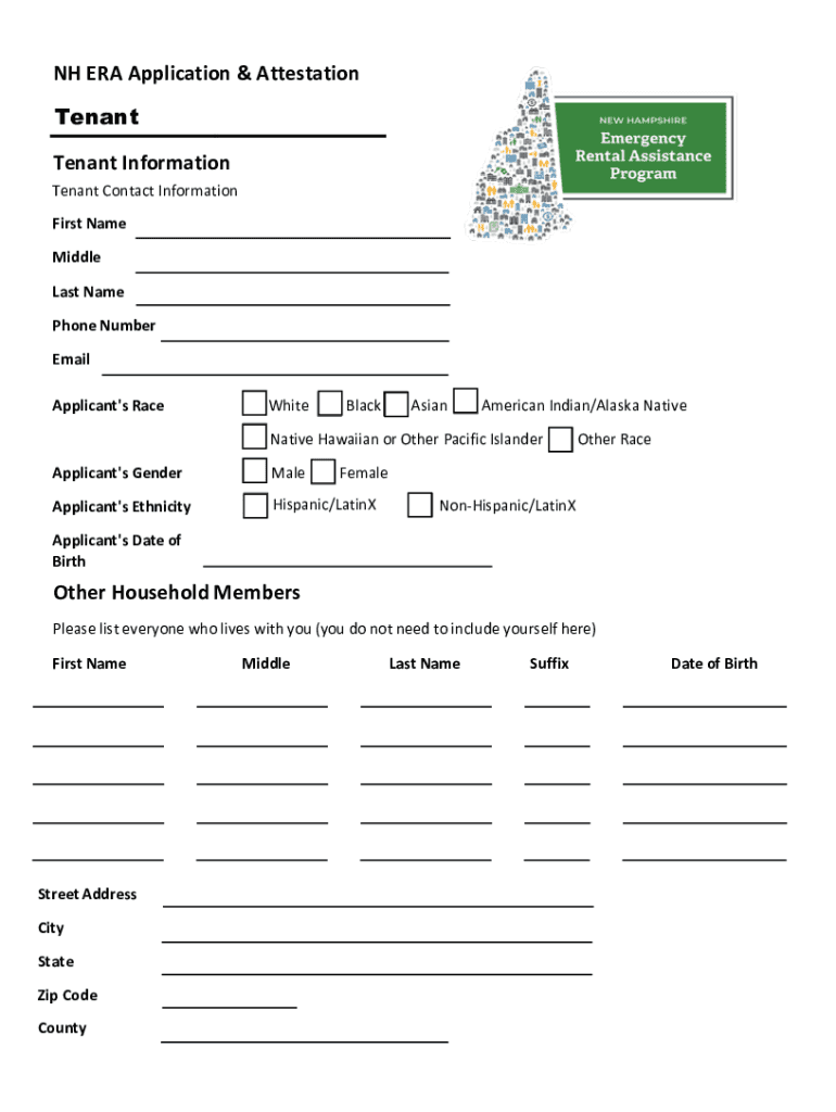 NH ERA Application & Attestation Tenant Information Tenant Contact Information First Name Middle Last Name Phone Number Email Applicant's RaceWhiteBlackAsianAmerican Indian/Alaska NativeNative Hawaiian