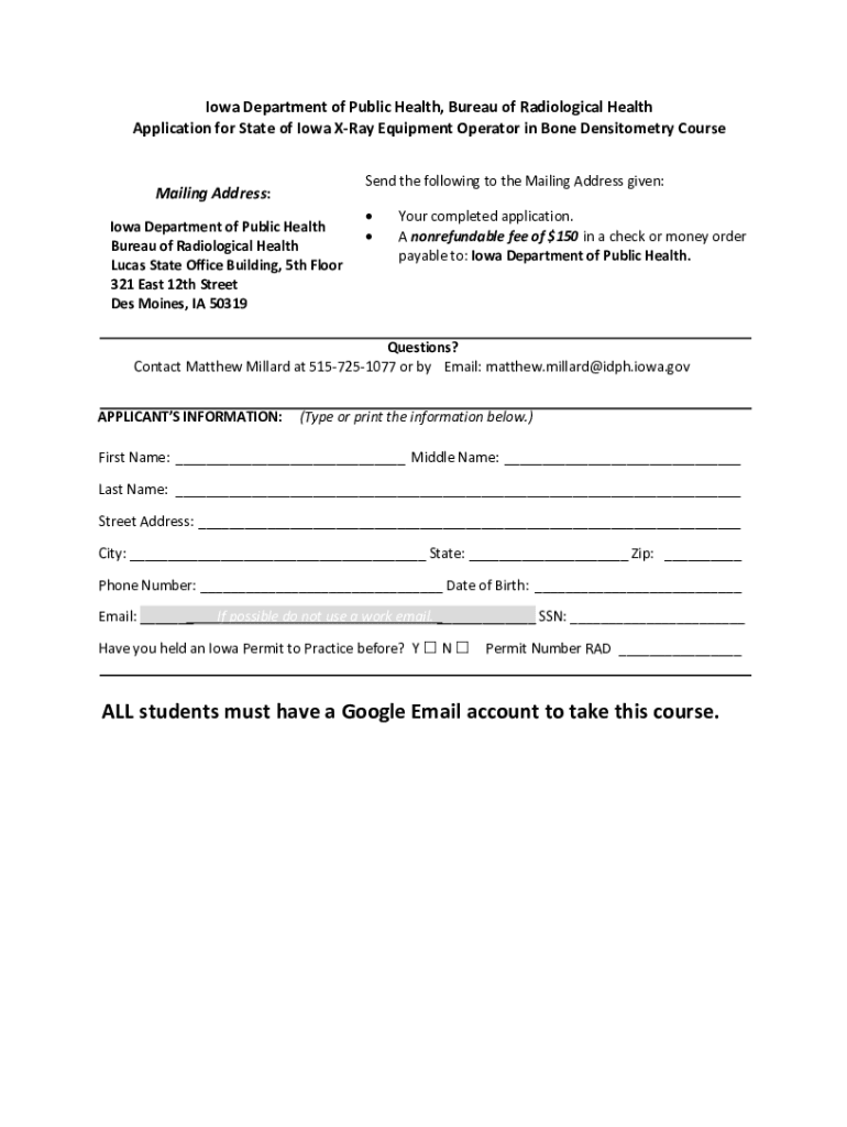 Get the free Bureau of Radiological Health - Iowa Department of Public ...