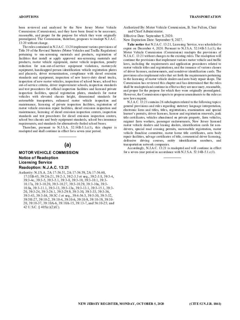 ADOPTIONSTRANSPORTATIONbeen reviewed and analyzed by the New Jersey Motor Vehicle