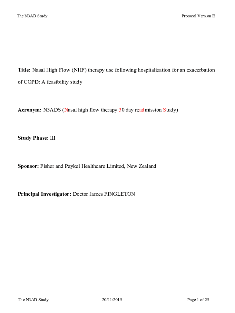 The N3AD StudyProtocol Version Title: Nasal High Flow (NHF) therapy use following hospitalization for an exacerbation