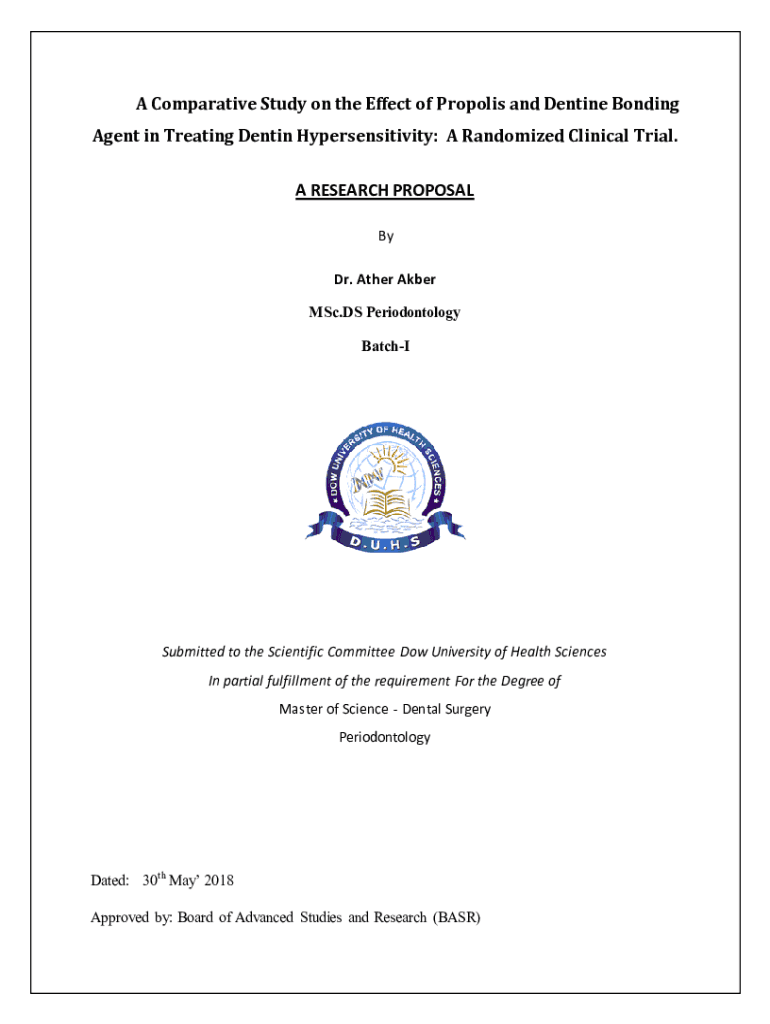 A Comparative Study on the Effect of Proposes and Dentin Bonding Agent in Treating Dentin Hypersensitivity: A Randomized Clinical Trial. A RESEARCH PROPOSAL By Dr. Other Amber M.Sc. DS Period ontology