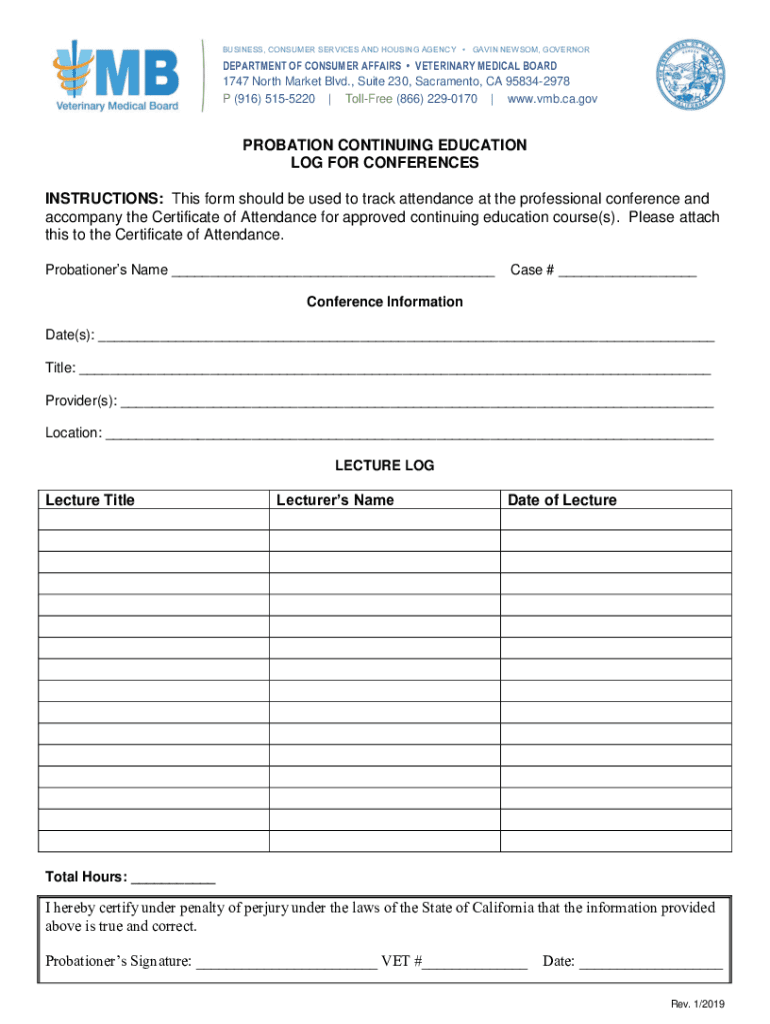 Get the free Probation Continuing Education Log for Conferences - Vet