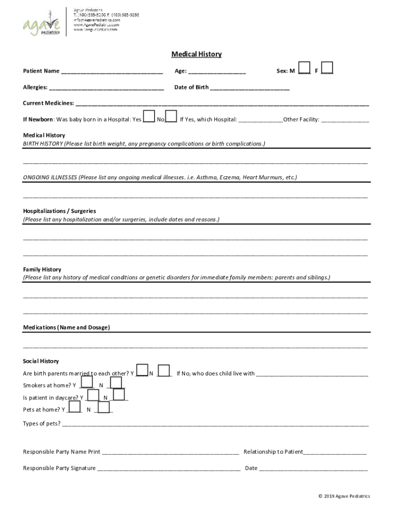 Medical History Patient Name Age: Sex: M F Allergies: Date of Birth Current Medicines: If Newborn: Was baby born in a Hospital: Yes No If Yes, which Hospital: Other Facility: Medical History BIRTH