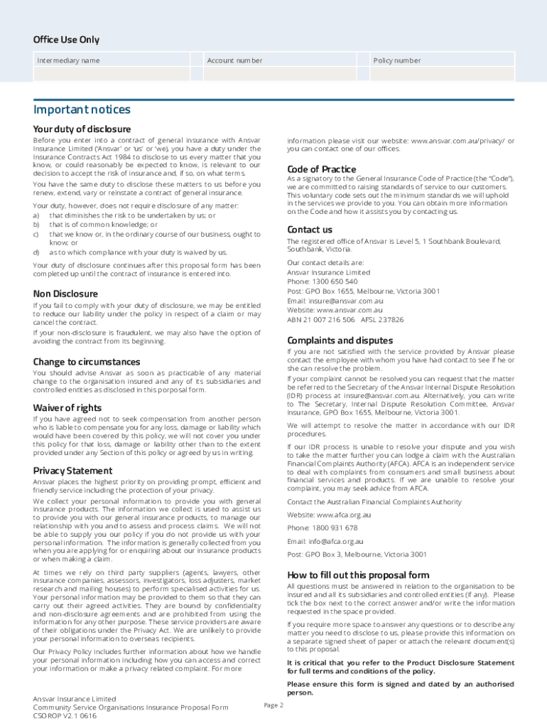 Community Service Organisation Insurance is not the form you're looking for?Search for another form here.