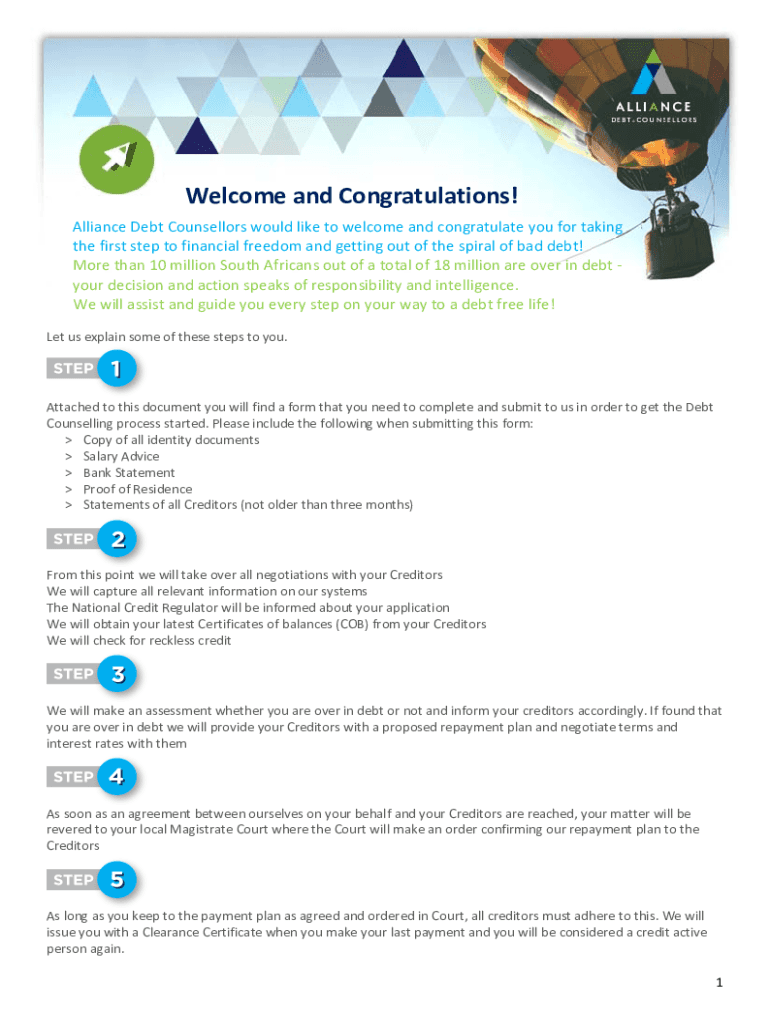 Get the free Welcome and Congratulations! - Alliance Debt Counsellors