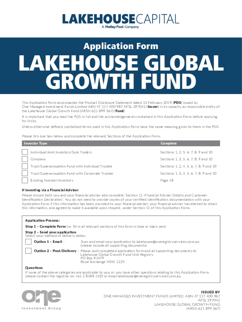 This Application Form accompanies the Product Disclosure Statement dated 15 February 2019 (PDS) issued by