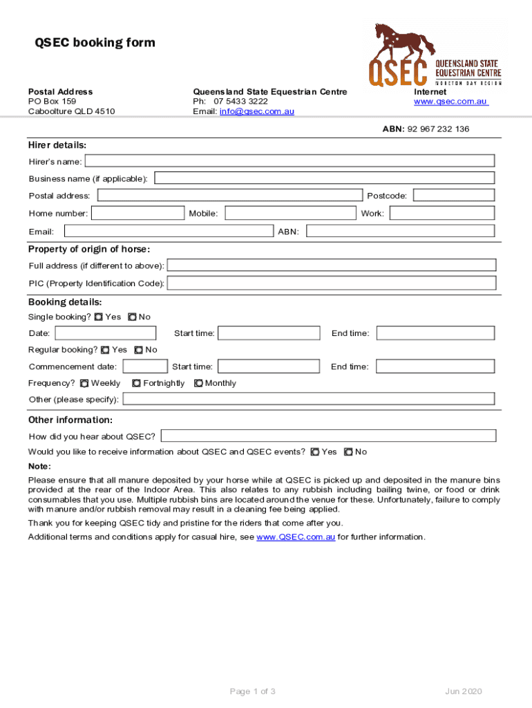 Fill out your qsec booking form online with pdfFiller!