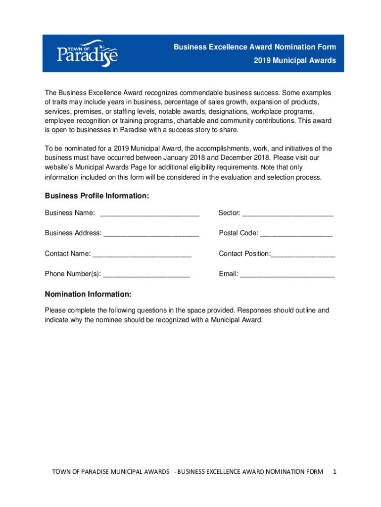 Business Excellence Award Nomination is not the form you're looking for?Search for another form here.