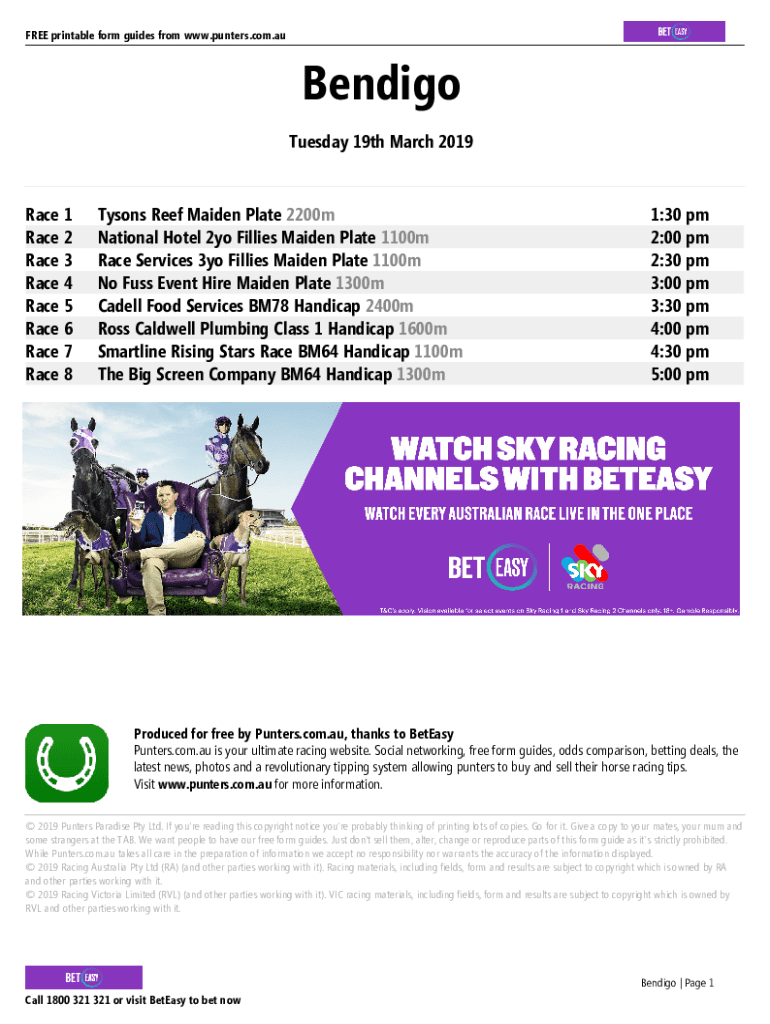 Get the Bendigo Printable Form Guide - Tuesday 19th March 2019. FREE Printable Horse Racing Form ...