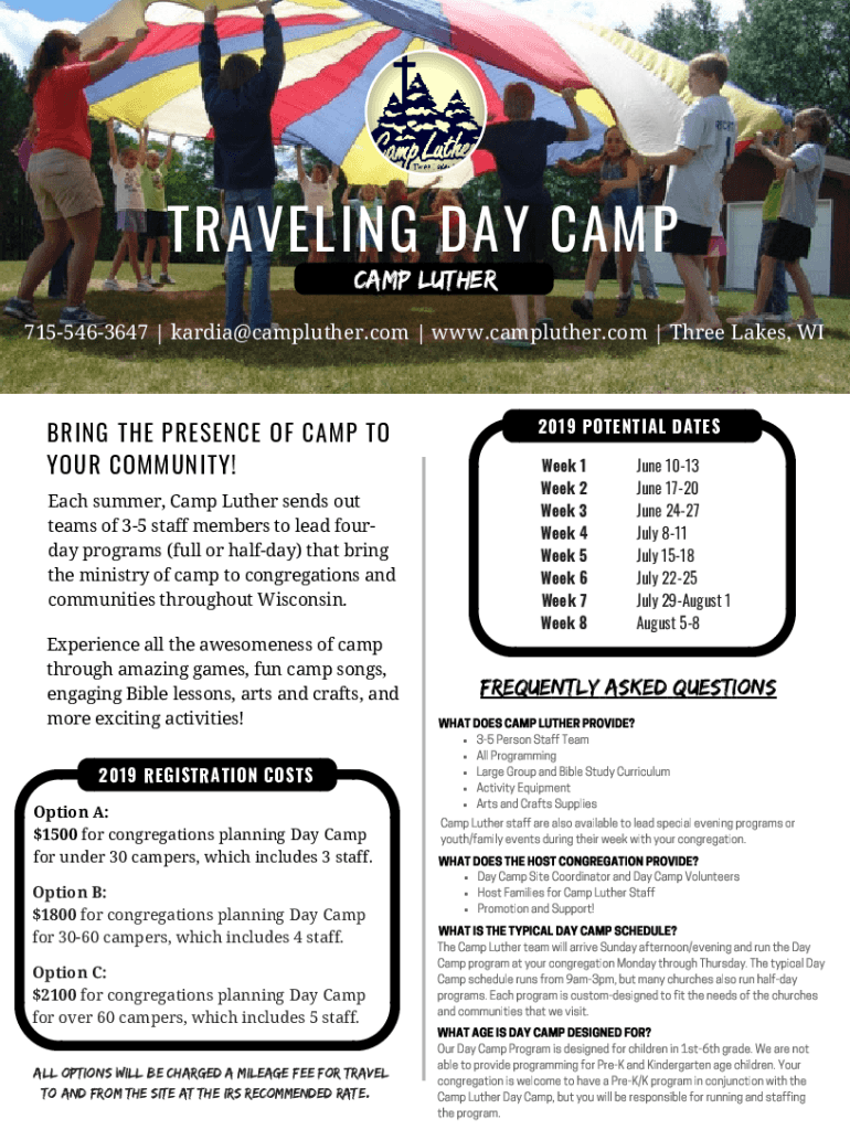 Get the free Summer Camps - Lutherdale Ministries