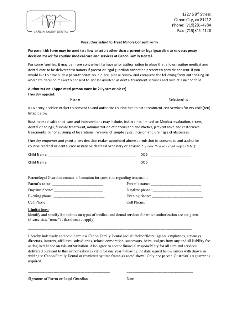 Preauthorization to Treat Minors Consent Form