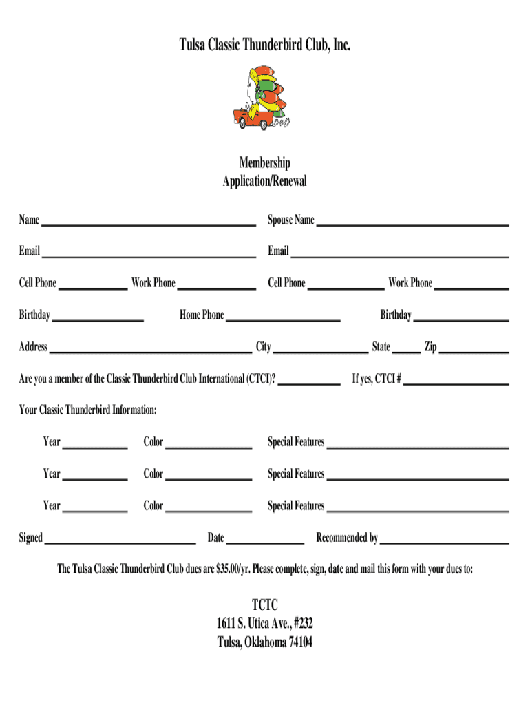 Tulsa Classic Thunderbird Club, Inc. Membership
